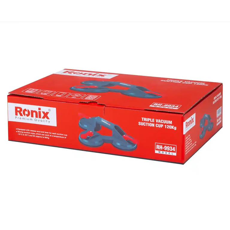 قاپک سنگ و شیشه سه قلو رونیکس مدل RH-9934، ابزاری حرفهای و قدرتمند برای جابهجایی سریع انواع شیشه، پنجره، در، کاشی و سنگهای صاف است. این محصول با سه کاسه قاپک مقاوم از جنس لاستیک و بدنهای از پلیمر مقاوم ABS طراحی شده است.